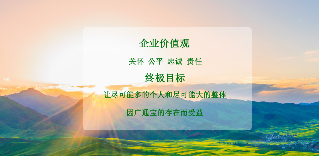 秉承“關懷、公平、忠誠、責任”的價值觀和“讓盡可能多的個人和盡可能大的整體因廣通的存在而受益”的終極目標,我們將致力于人類食品、醫(yī)藥健康事業(yè)并誠摯歡迎國內(nèi)外朋友、企業(yè)建立廣泛的經(jīng)濟、技術交流與合作,共同締造更加健康、和諧、美好的明天。